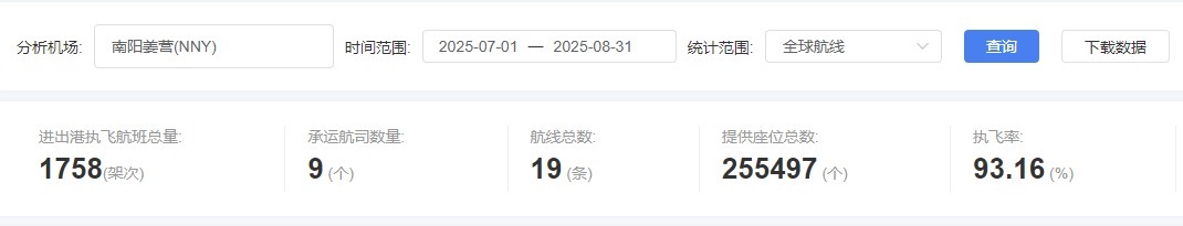 南阳机场2025年暑运航班量分布