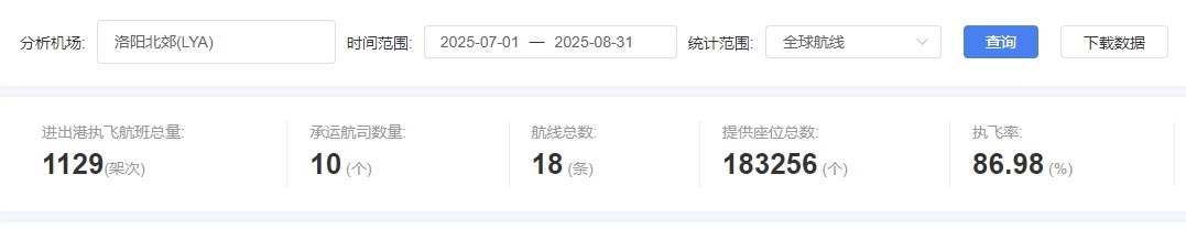 洛阳机场2025年暑运航班量分布