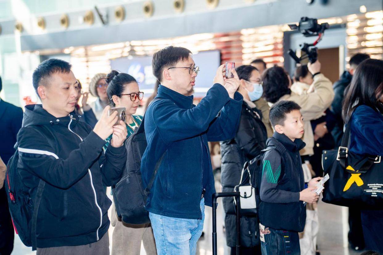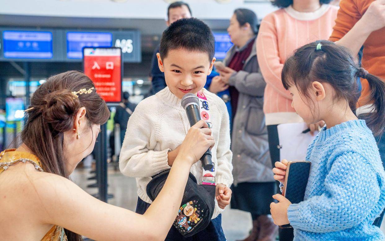 为了让来自五湖四海的旅客感受地道湖湘新春民俗,现场还特别设计了“马”字成语闹新春、春节诗词大挑战、湖南春节习俗小问答趣味互动环节。“一马当先!”“爆竹声中一岁除,春风送暖入屠苏”“腊味三件套里有腊鱼、腊肉还有腊鸭!”旅客们踊跃举手,答对者将收获精致的湖湘文创礼品。“没想到会在机场偶遇这么精彩的国风音乐会,还学到了不少湖南过年的习俗,太有意思了!”一位来长沙旅游的山东旅客说道。