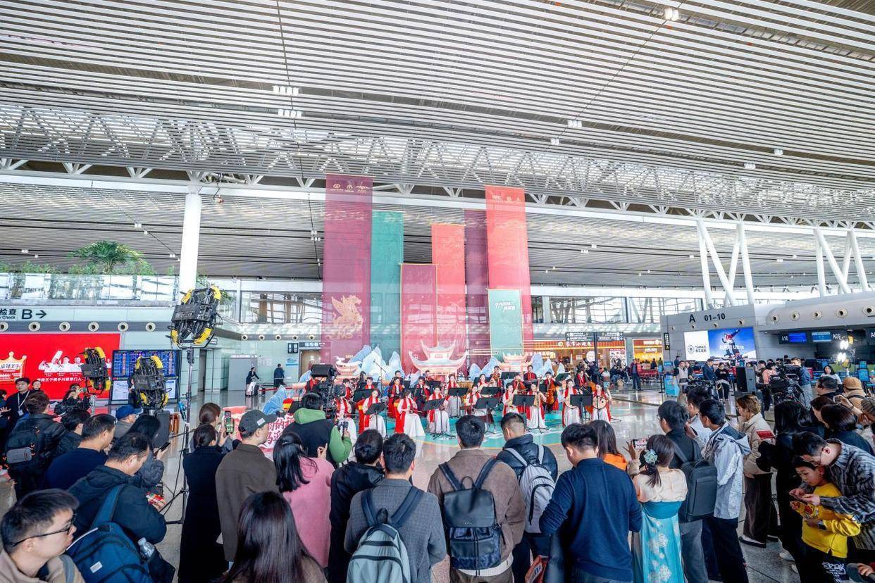 春运大幕徐徐拉开,南来北往的旅客步履匆匆,向着团圆的方向奔赴。2月2日下午,在长沙黄花国际机场T2航站楼内,婉转的民乐旋律悠然响起,一场充满浓郁湖湘韵味的“新春民族音乐会”在此倾情奏响,为旅客送上了一份赏心悦目的文化厚礼。